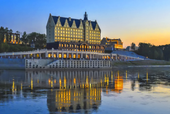 俄罗斯独资施泰根博格大酒店是一家国际五星级豪华大酒店,位于黑河俄罗斯边境黑龙江江畔。我公司为其设计的风格具有典型的俄罗斯特点,外饰采用的纯黄铜复古材料,造型设计与酒店装饰完美结合。此项目也成为俄罗斯边境标志性建筑。